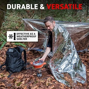 ✅【ESSENTIAL】Survival heat blankets are necessary for any outdoor venture. Throw it in your pack and keep one in your car for ensured peace of mind. In cases of emergencies, this multifunctional, insulating, weatherproof solar foil blanket not only provides considerable heat in extreme cold situations, but can also be used to build shelter protecting you and your family from the elements.