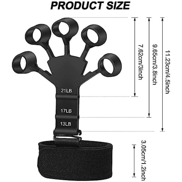 Silicone Guitar Finger Exerciser provides you with 6 levels of resistant levels, including 6.6LB, 8.8LB, 11LB, 13LB, 17LB, and 21LB. You can choose the appropriate level according to your grip strength.