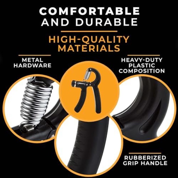 ⚙️ Adjustable Resistance – Your forearm trainer is adaptable to your strength with an adjustable resistance knob ranging from 11 lbs to 132 lbs. The ergonomic non-slip comfort handles will ensure you never lose your grip. Our hand grips for strength have reinforced stainless steel tension springs and feature high-quality durable plastic bodies. These wrist strengtheners are perfect for musicians, copywriters, weight lifters, and those with arthritis issues.