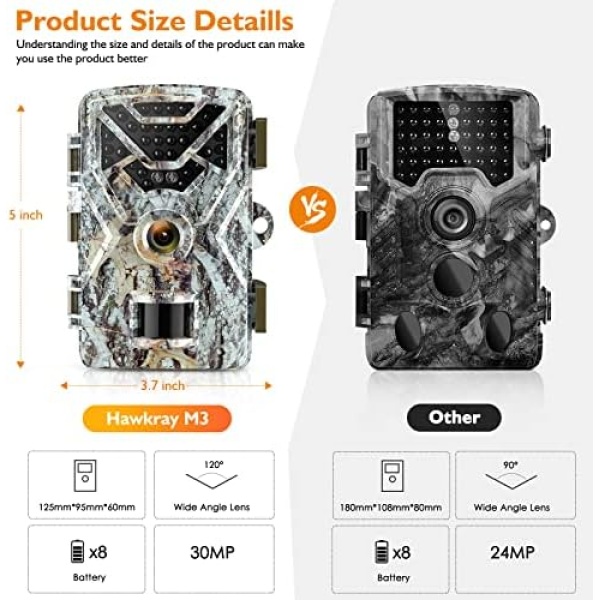 Hawkray Trail Camera 30MP 2K,Game Camera with Wide-Angle Motion Latest Sensor