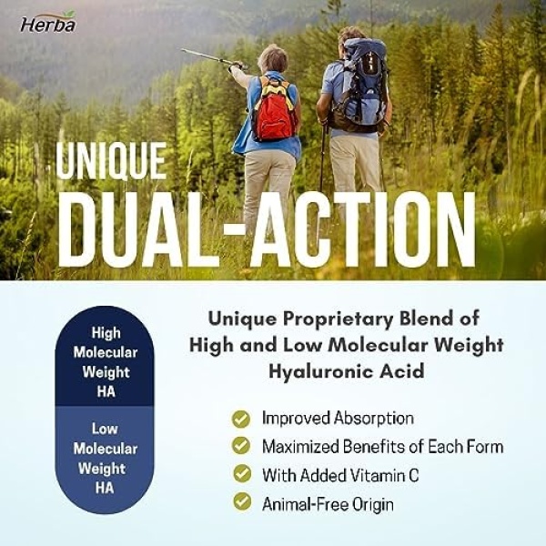Joint and Bone Health – Hyaluronic acid combined with Vitamin C helps in collagen formation to maintain and develop healthy bones. Helps support joint health.