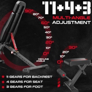 11+4+3 Adjustable Workout Bench – Our adjustable workout bench designed with 11 back Adjustments & 4 seat Adjustments & 3 foot Adjustments for Full Body Workout where you just pull the FAST BOLT, adjust the position that fits you with an automatic lock safely!