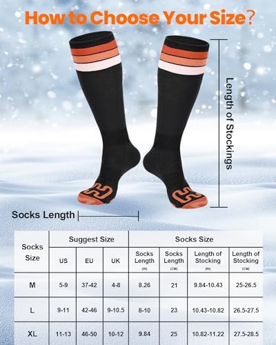 🧦【Comfortable and Breathable Fabric Design】Made of modal fibre, a natural and environmentally friendly material, dry and breathable, soft and comfortable, with natural anti-wrinkle properties and 50% higher sweat absorption than cotton fibre; anti-pilling, elastic and easy to flame retardant. With our socks, you can fully enjoy skiing and winter sports without worrying about cold feet.