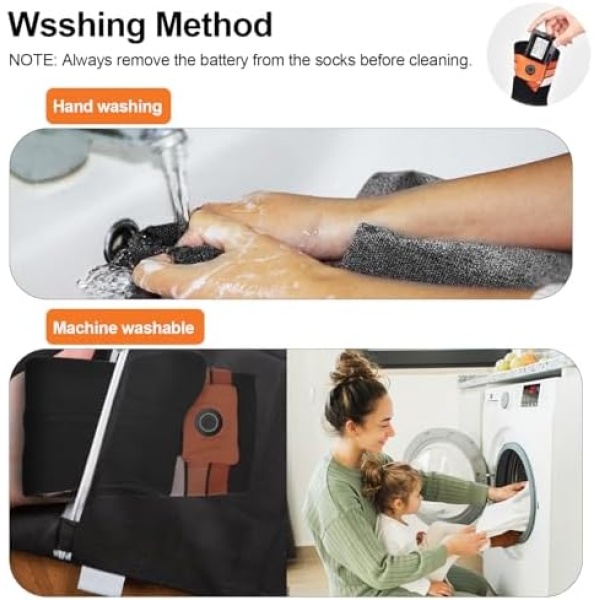 🧦【Long-Lasting & Powerful Battery】Equipped with a 7.4V 22.2WH battery that can be used continuously for up to 10 hours after a full charge. Our batteries are coated with PVC film coating technology, which makes the batteries smaller in size and lower in weight, and better fit the socks and not easy to fall out.