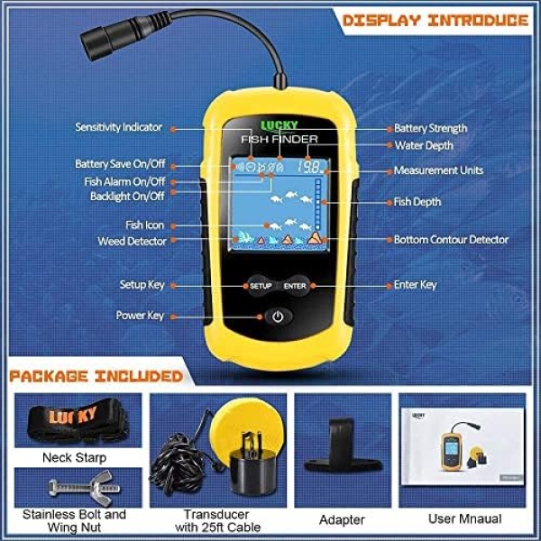 ✦ Ideal for Fishing & Fishing Gift : It is easy to use LUCKY depth finder in boat fishing, ice fishing, shore fishing no matter in freshwater or in saltwater. If you are looking for a gift for your husband, father, friends or any anglers, then look no further, the LUCKY fish finder is now better than ever.