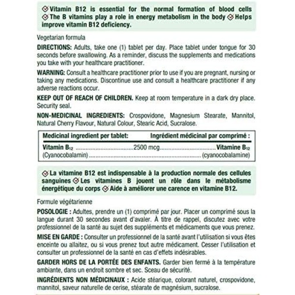 This unique Quick Dissolve B-12 provides an easy and delicious way to deliver essential B-12. Place the quick dissolve tablet under your tongue for 30 seconds before swallowing and you’ll enjoy the delicious natural cherry flavour and the benefits of Vitamin B-12!