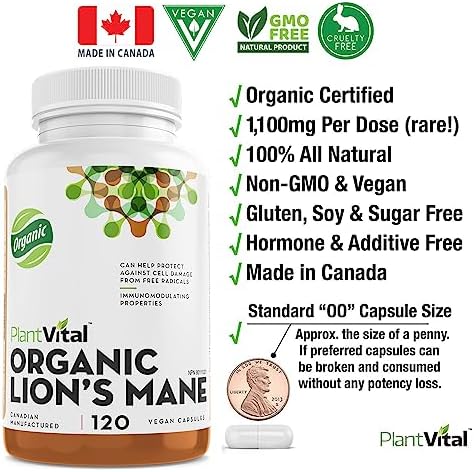 GENEROUS DOSAGE: Plantvital’s mushroom supplements of 1,100 mg per serving of 100% Lions Mane Extract is the highest available with 40% Polysaccharides.