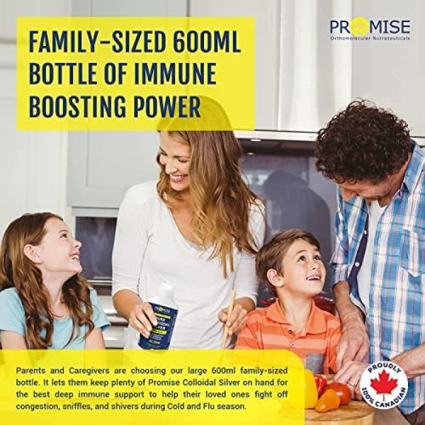 FAMILY-SIZED 600ML BOTTLE OF IMMUNE BOOSTING POWER: Parents and Caregivers are choosing our large 600ml family-sized bottle because it lets them keep plenty of Promise Colloidal Silver on hand for the best deep immune support to help their loved ones fight off congestion, sniffles, and shivers during Cold and Flu season
