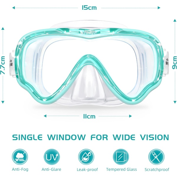 Anti-Fog Coating for Clear Viewing.Tempered Glass Lens for Non-distortion and Durability.Soft Liquid Silicone Skirt Fits a Wide Range of Face Shapes100% Leak Proof DesignSpeed Fit Buttons for Easy Headstrap Adjustment.