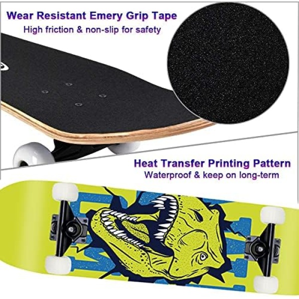 Made of 8 layer Maple wood with back thermal transfer printing, and emery non-slip black grip tape on board which provides full grip during skating.