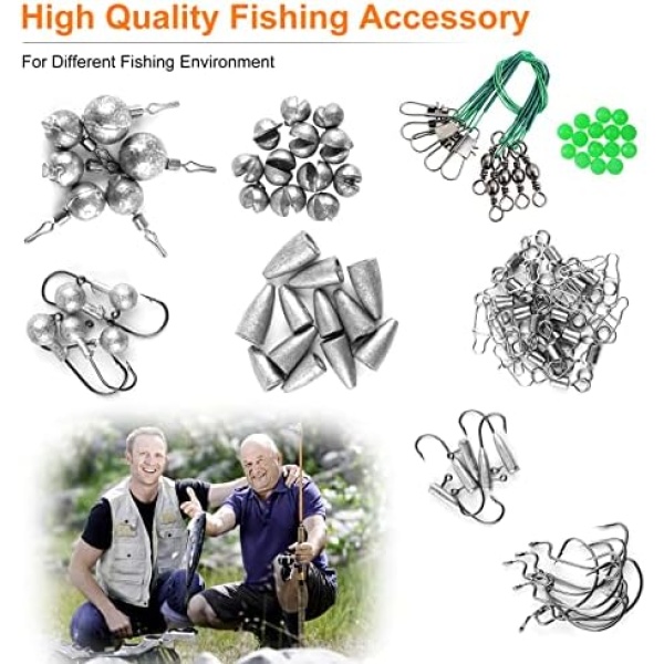 【Variety of Lures Combination】- The 327 pieces fishing lure set with everything you need: Crankbait, Popper, Pencil, Minnow, VIB, Spinner, Spoon, Soft Worms, Frog, Split Tail Fishes, Snap, Swivel, Offset Hooks, Jigs, Drop Shot Weights, Bullet Sinker, Split Shots, Beads, Leaders, Hooks.