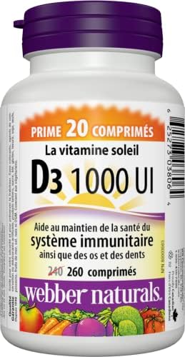 Vitamin D, also known as the “sunshine vitamin”, is a critical nutrient for the development and maintenance of healthy bones and teeth. Vitamin D3 1000 IU from Webber Naturals contains the preferred cholecalciferol form of vitamin D. It helps the body absorb calcium and phosphorus, and is a factor in the maintenance of good health.