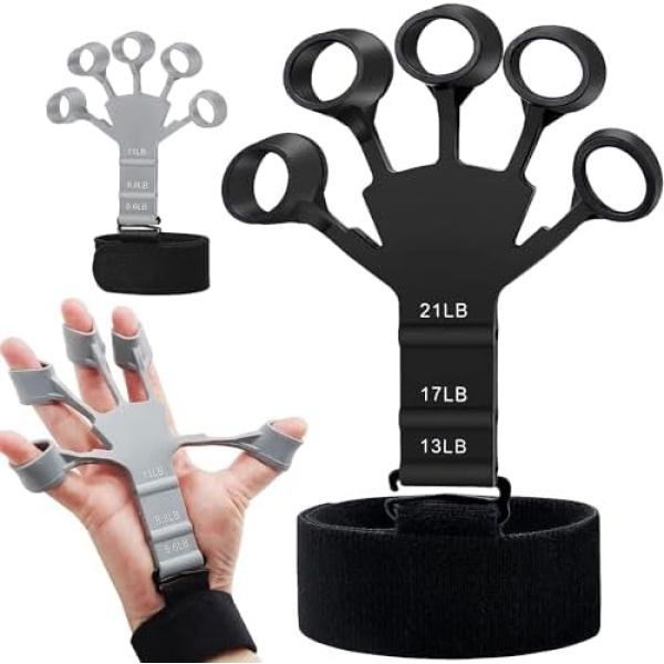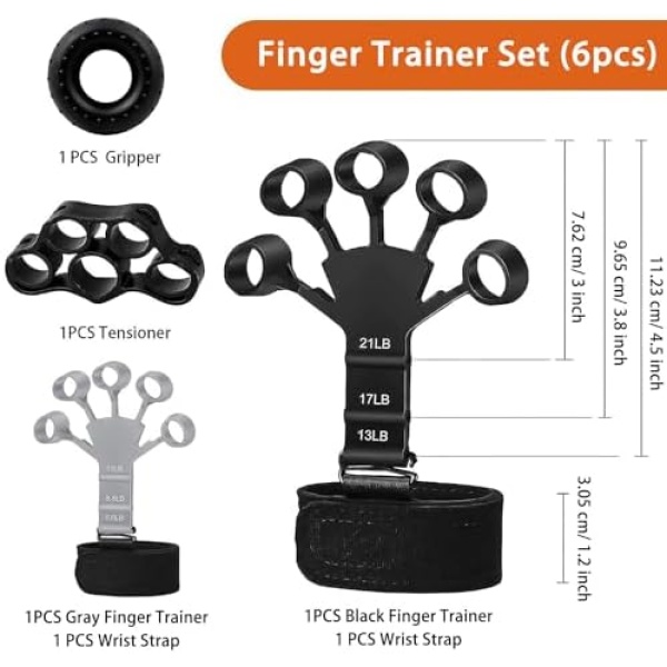 ✅【Perfect Gift Set – 6PCS】Includes 1 Black Finger Trainer, 1 Gray Finger gripper, 2 Wrist Straps, 1 hand strengthners, 1 Finger Tensioner Griper. Ideal for athletes (rock climbing, fitness, tennis, baseball, boxing), musicians (guitar, bass, pianist, violinist), and daily activities (driving, typing, writing, working). A thoughtful gift for friends and family on Thanksgiving, Christmas, and Halloween!