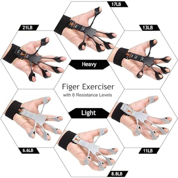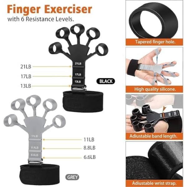 ✅【6 Levels Resistance Finger Exerciser】ZivKit Silicone Finger Exerciser & Hand Strengthener features 6 resistance levels: 6.6LB, 8.8LB, 11LB, 13LB, 17LB, and 21LB. Choose the appropriate level based on your grip strength, gradually increasing it to challenge yourself and achieve greater gripster hand strength. Suitable for beginners to advanced users.